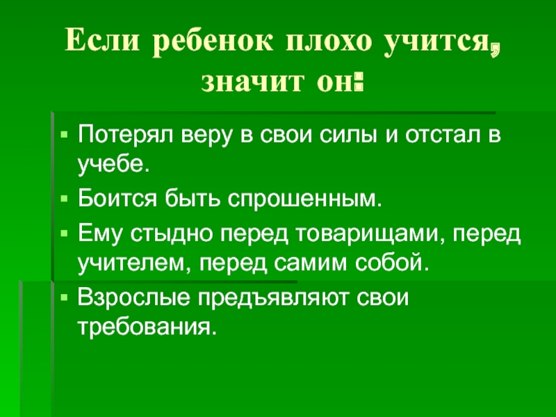 в получении новых знаний. К тому же следует учитывать, что успешность ребенка в учении определяется множеством факторов. Не последнюю роль среди них играет вера родителей в возможности своего ребенка, а также их способность оказать ему реальную помощь в учебе.