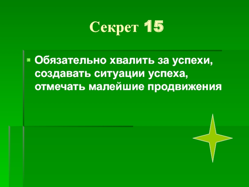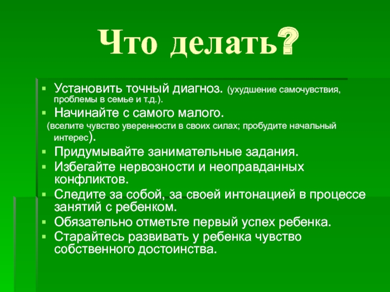 Обязательно хвалить за успехи, создавать ситуации успеха, отмечать малейшие