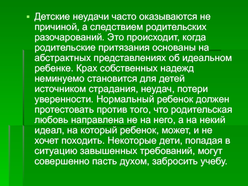 Слайд 30Детские неудачи часто оказываются не причиной, а следствием родительских разочарований.