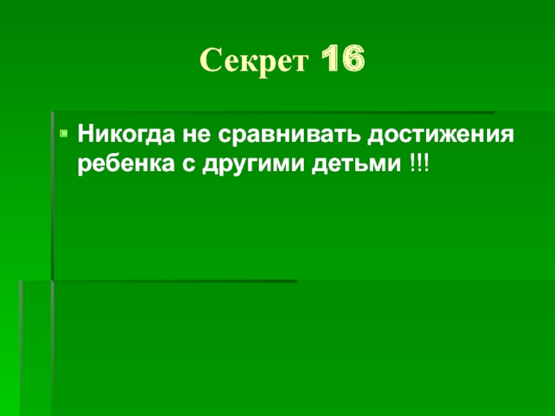 Никогда не сравнивать достижения ребенка с другими детьми !!!