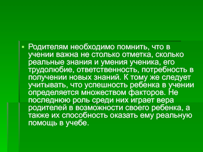 Слайд 14Родителям необходимо помнить, что в учении важна не столько отметка,
