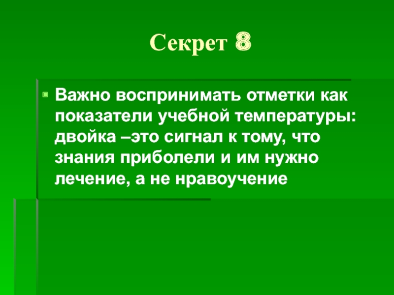 Важно воспринимать отметки как показатели учебной температуры: двойка –это