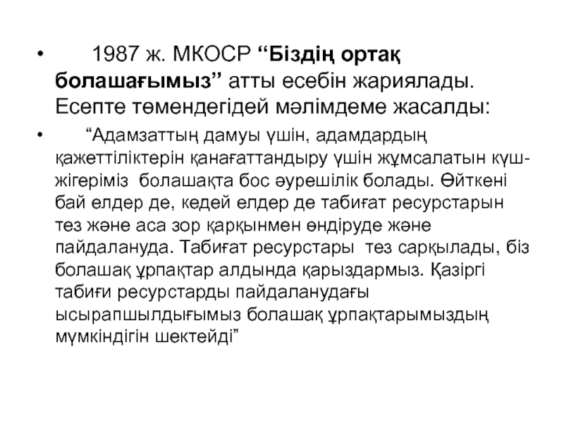 Слайд 2 1987 ж. МКОСР “Біздің ортақ болашағымыз” атты