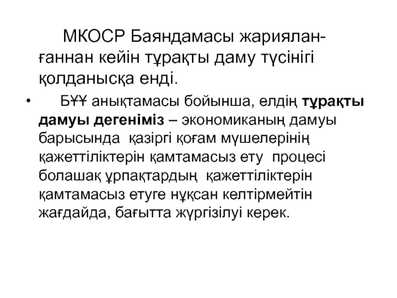 Слайд 3 МКОСР Баяндамасы жариялан-ғаннан кейін тұрақты даму