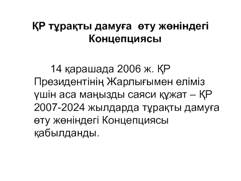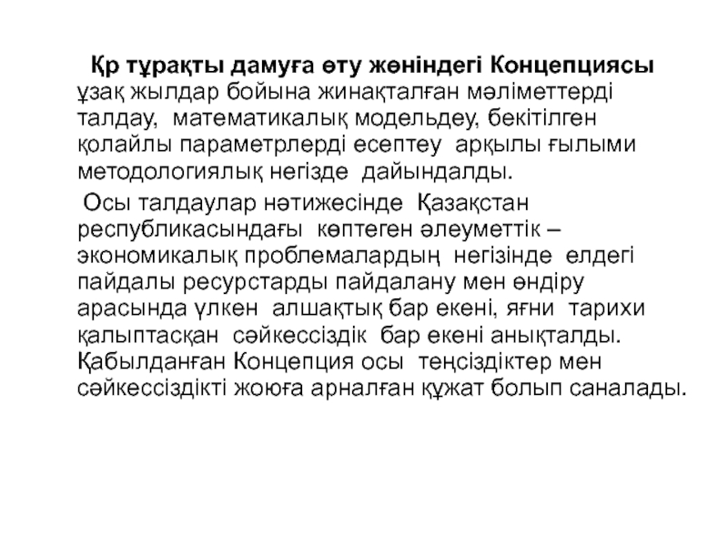 Слайд 8ҚР тұрақты дамуға өту жөніндегі Концепциясы
