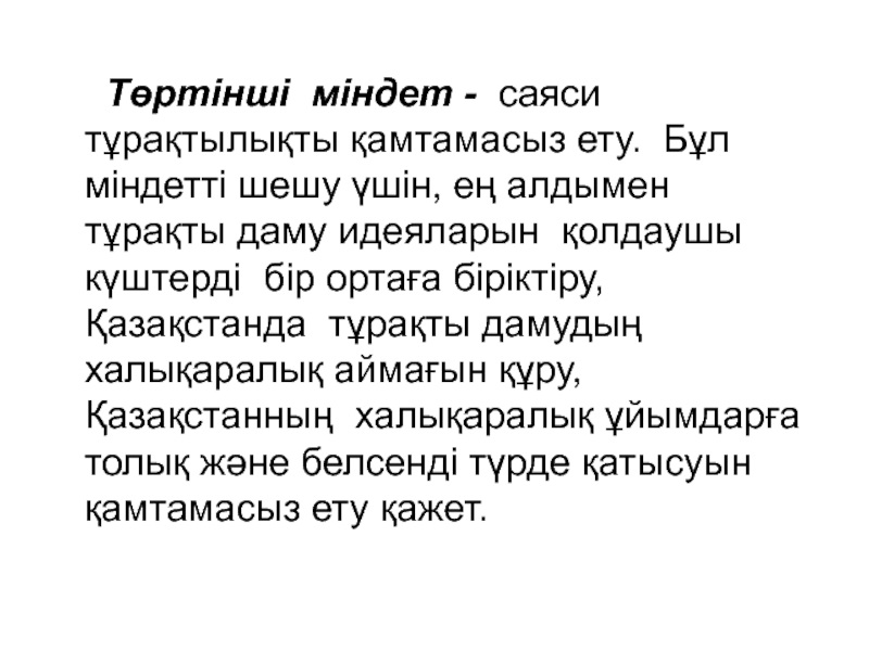 Слайд 14 Төртінші міндет - саяси тұрақтылықты қамтамасыз ету.