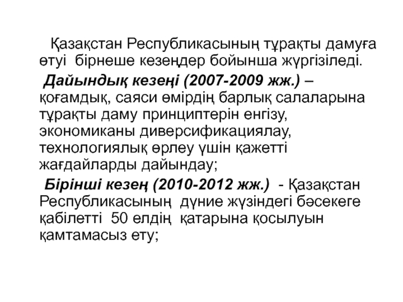 Слайд 15 Қазақстан Республикасының тұрақты дамуға өтуі бірнеше кезеңдер