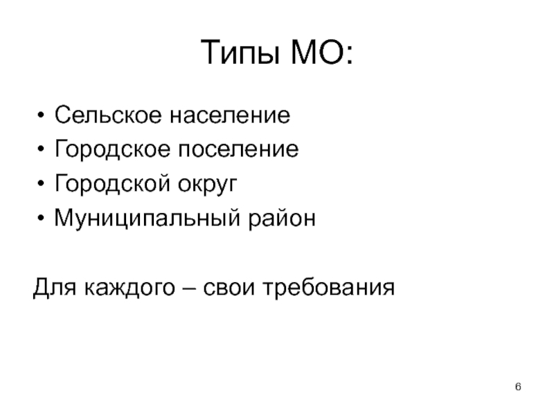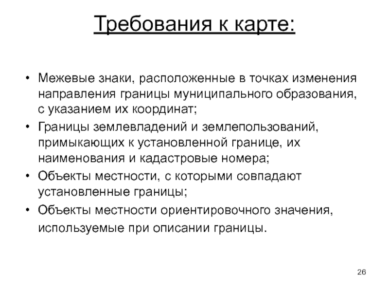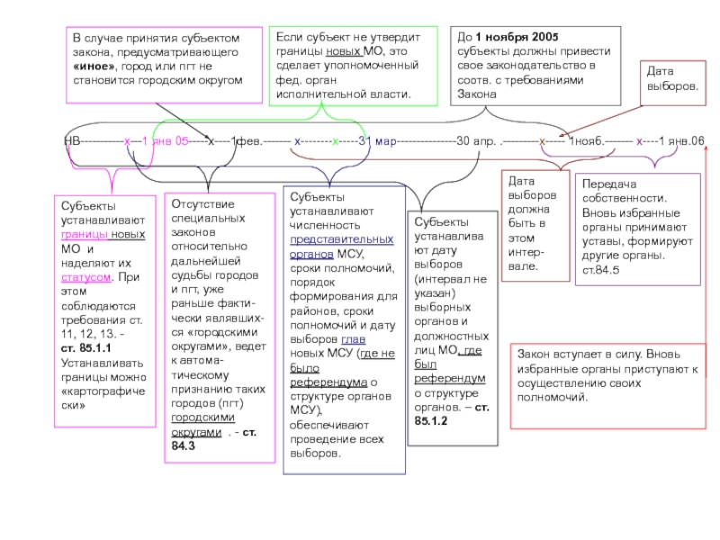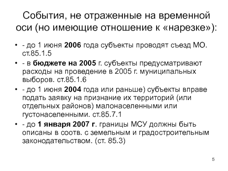 - до 1 января 2007 г. границы МСУ должны быть описаны в соотв. с земельным и градостроительным законодательством. (ст. 85.3)