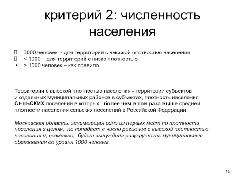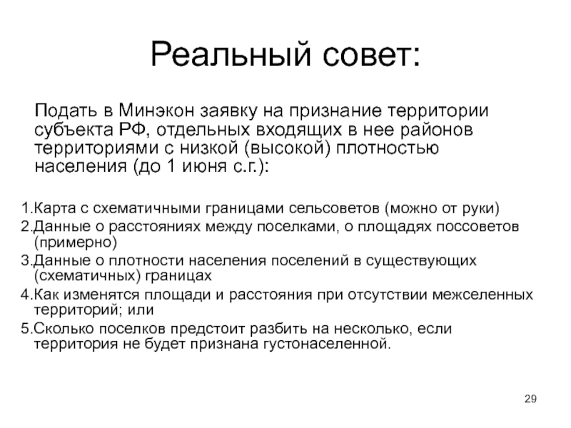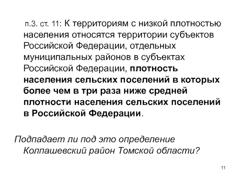 Слайд 11 п.3. ст. 11: К территориям с низкой плотностью