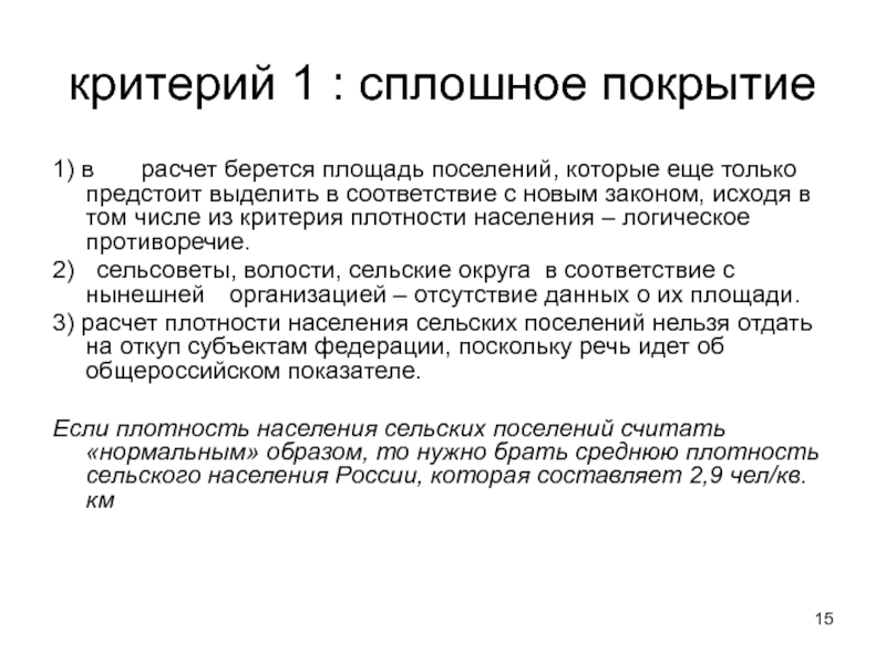 исходя в том числе из критерия плотности населения – логическое противоречие.