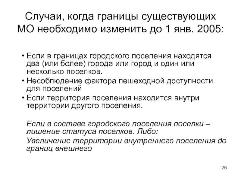 до 1 февраля 2005: можно принять закон, устанавливающий «иное» в результате чего город или пгт не станут городским округом (с 1 января 2006)