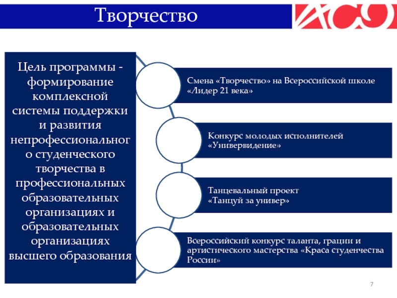 Цель программы - формирование комплексной системы поддержки и развития непрофессионального студенческого творчества в профессиональных образовательных организациях и
