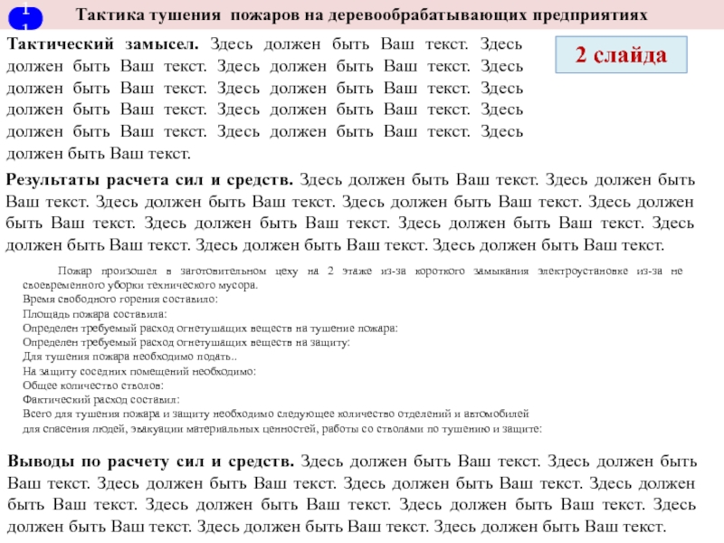 Результаты расчета сил и средств. Здесь должен быть Ваш текст. Здесь должен быть Ваш текст. Здесь должен быть Ваш текст. Здесь должен быть Ваш текст. Здесь должен быть Ваш текст. Здесь должен быть Ваш текст. Здесь должен быть Ваш текст. Здесь должен быть Ваш текст. Здесь должен быть Ваш текст. Здесь должен быть Ваш текст.