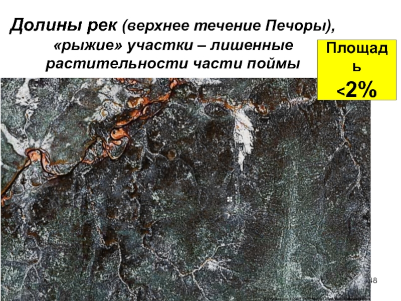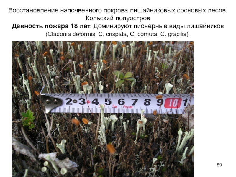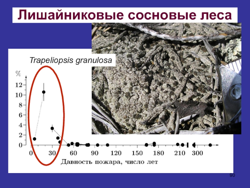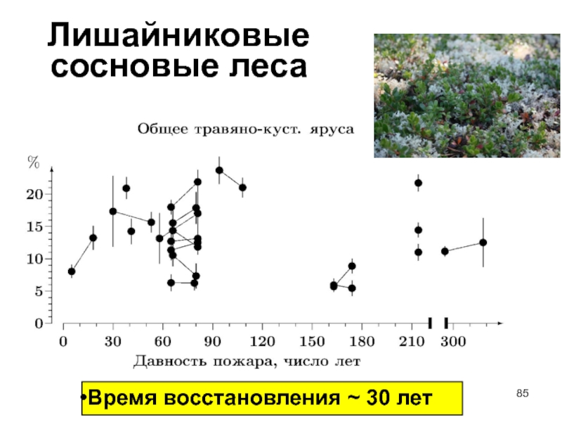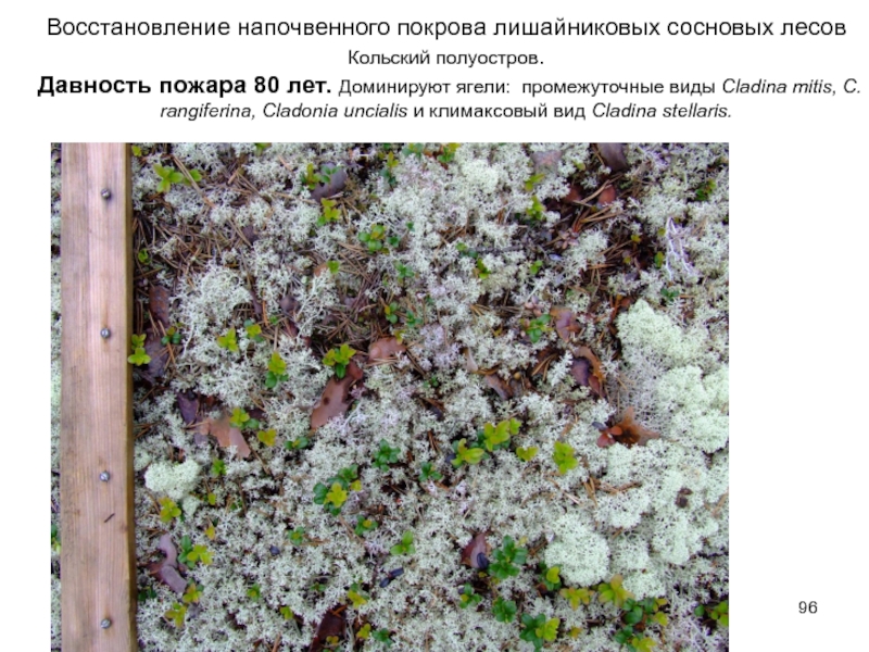 Слайд 111Большое количество опада березы препятствует полному восстановлению мохового покрова. Исходный