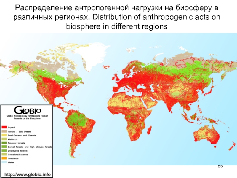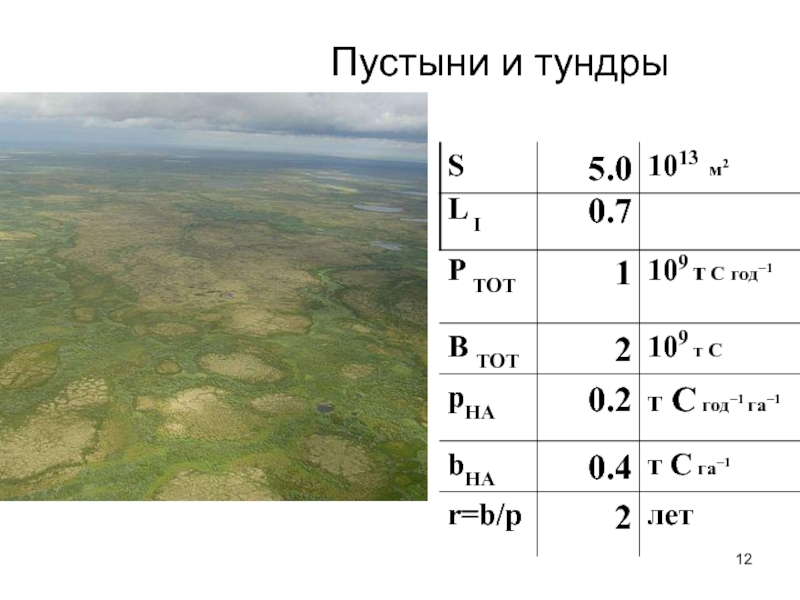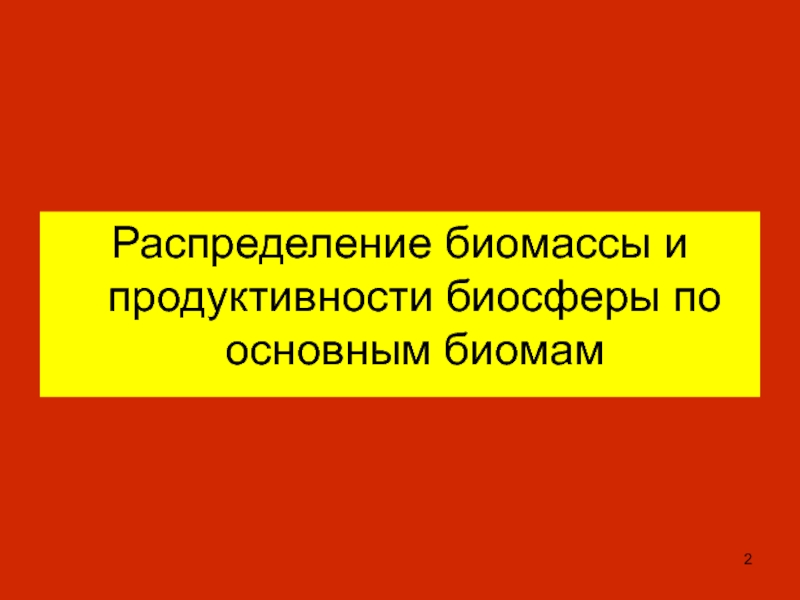 Слайд 2Распределение биомассы и продуктивности биосферы по основным биомам