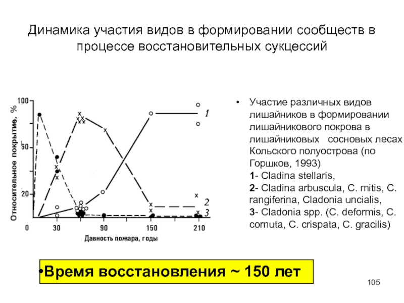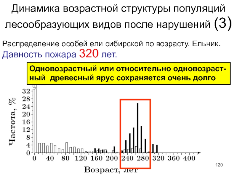 Слайд 120Динамика возрастной структуры популяций лесообразующих видов после нарушений (3)