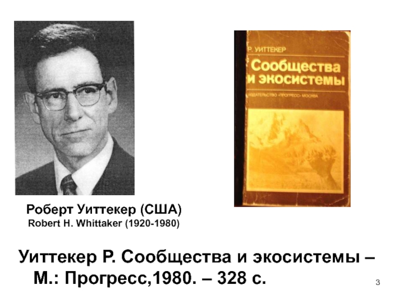 Слайд 3Уиттекер Р. Сообщества и экосистемы – М.: Прогресс,1980. – 328