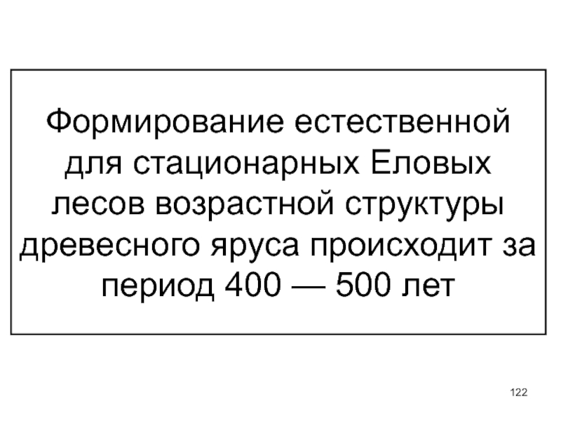Слайд 122Формирование естественной для стационарных Еловых лесов возрастной структуры древесного яруса