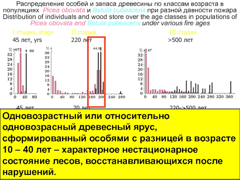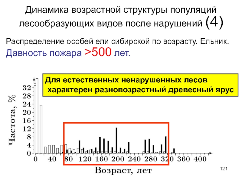 Слайд 121Динамика возрастной структуры популяций лесообразующих видов после нарушений (4)