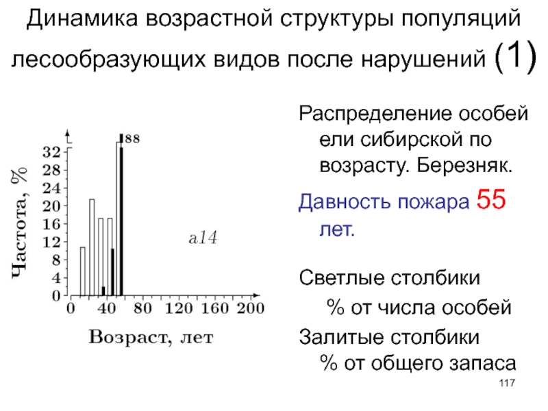 Слайд 117Динамика возрастной структуры популяций лесообразующих видов после нарушений (1)