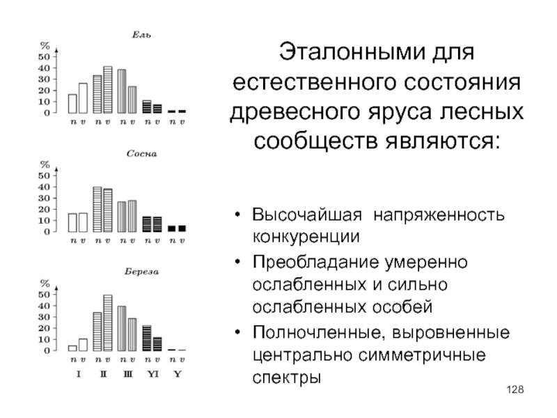 Слайд 128Эталонными для естественного состояния древесного яруса лесных сообществ являются: