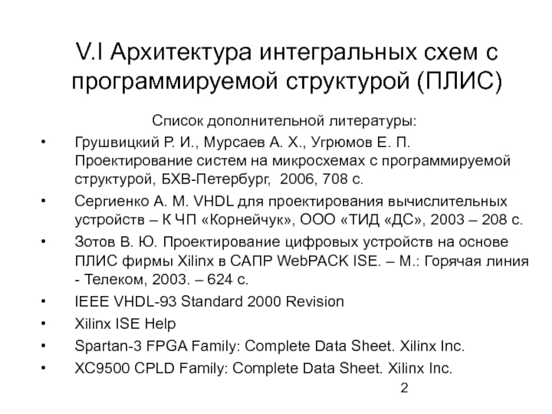 Архитектура интегральных схем с программируемой структурой (ПЛИС).