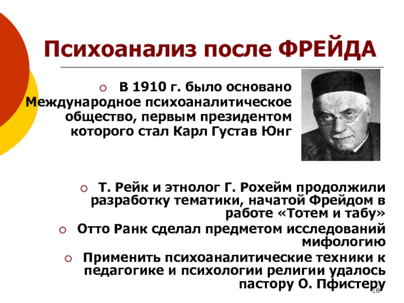 Слайд 18Психоанализ после ФРЕЙДА