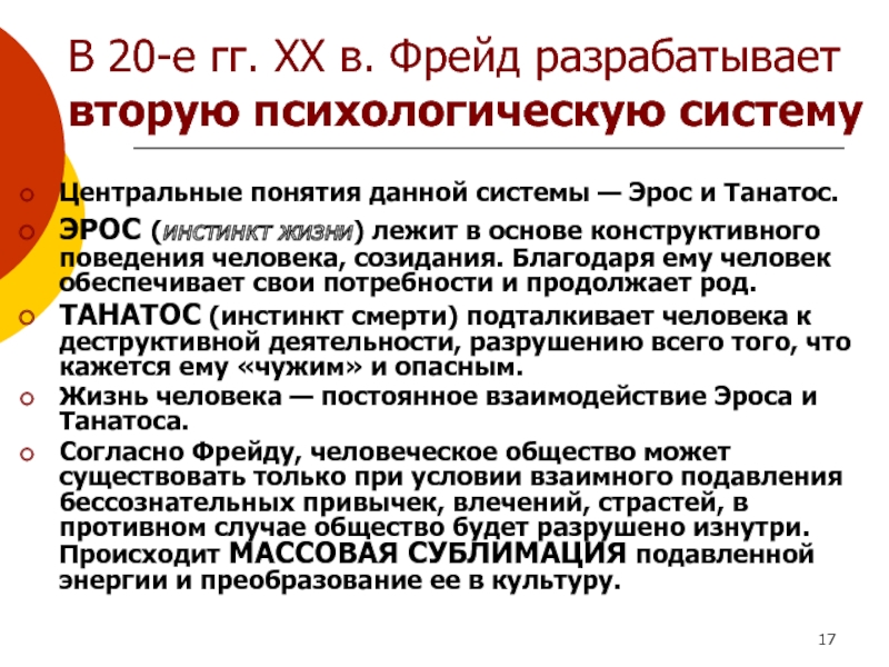 понятия данной системы — Эрос и Танатос.