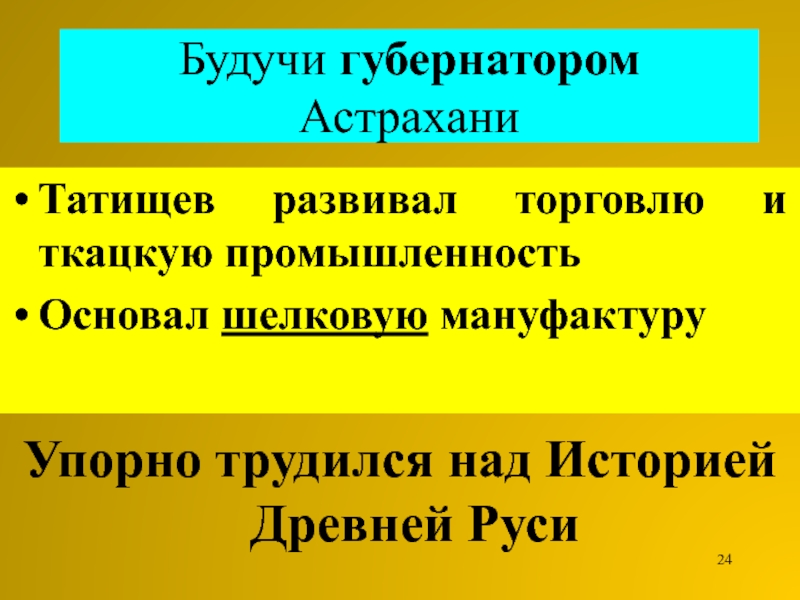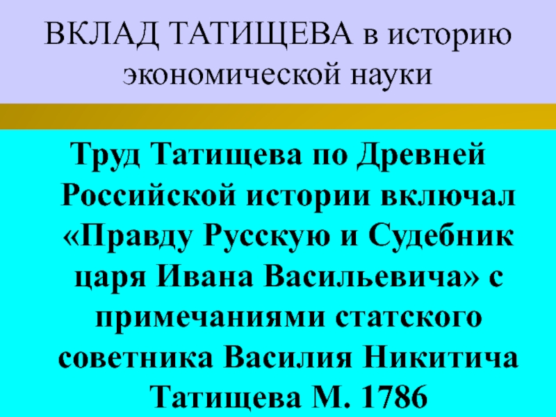 Татищев совершенствовал русскую философию и экономическую науку