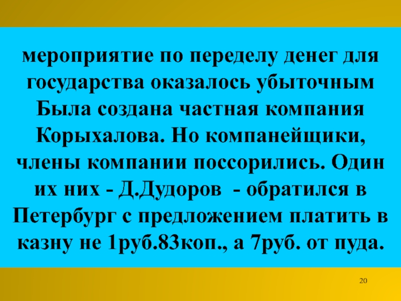Слайд 20мероприятие по переделу денег для государства оказалось убыточным