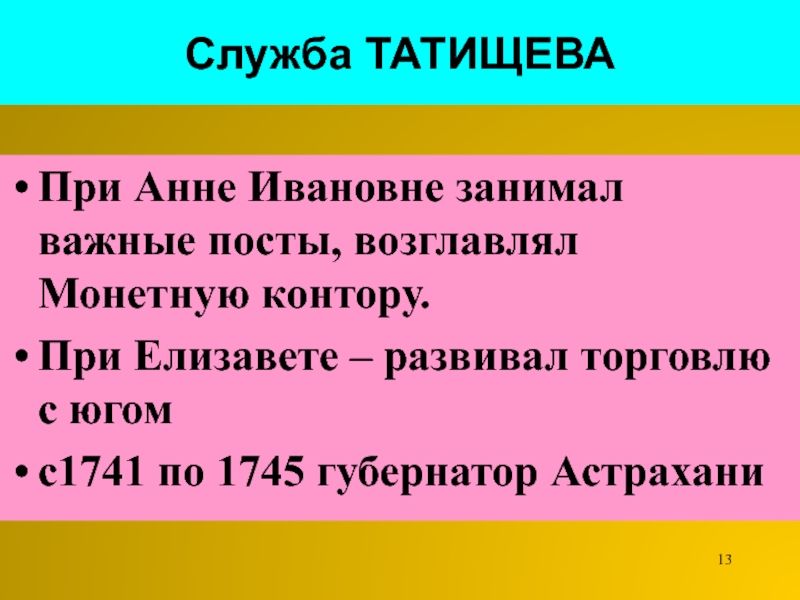 Слайд 13Служба ТАТИЩЕВА