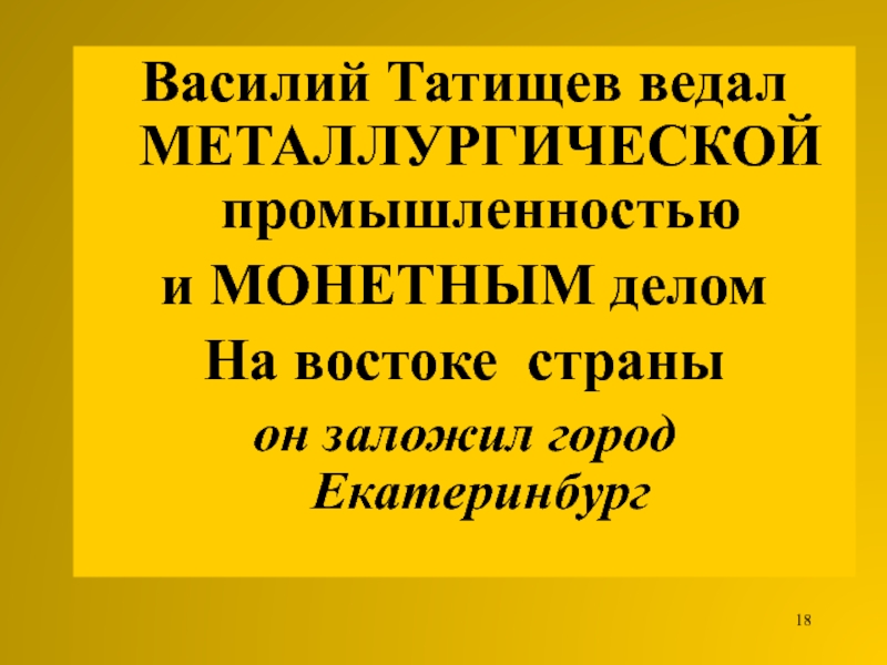 Слайд 18Василий Татищев ведал МЕТАЛЛУРГИЧЕСКОЙ промышленностью