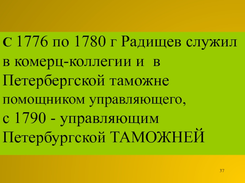 Слайд 37С 1776 по 1780 г Радищев служил в комерц-коллегии и