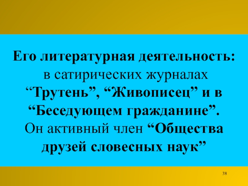 Слайд 38Его литературная деятельность: