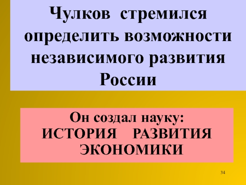 Слайд 34Чулков стремился определить возможности независимого развития России