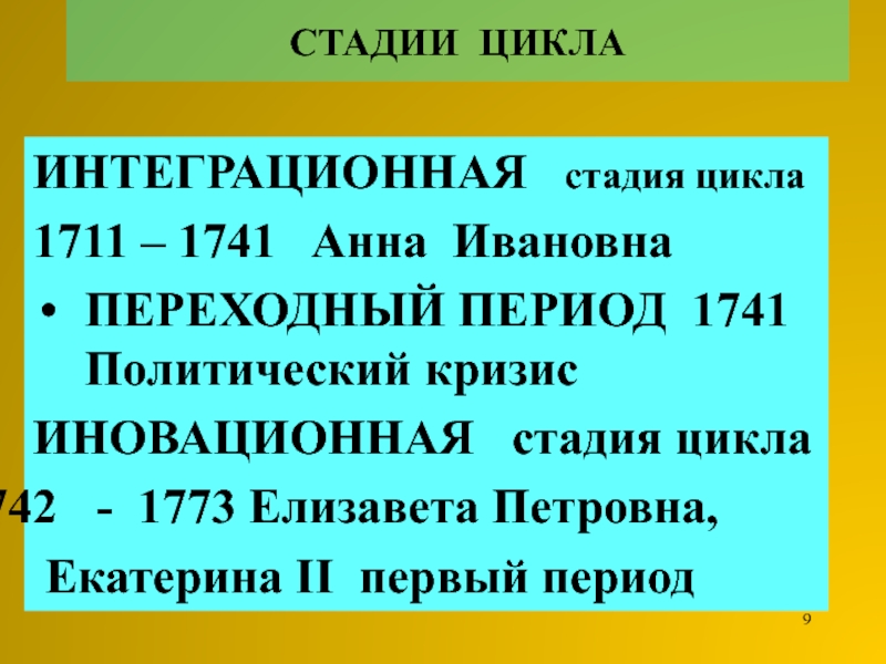 Слайд 9СТАДИИ ЦИКЛА