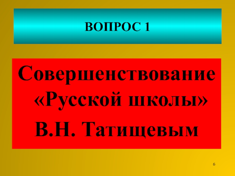 1. Совершенствование «Русской школы» Татищевым