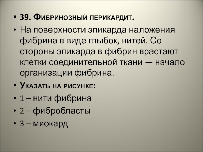 Слайд 5139. Фибринозный перикардит.