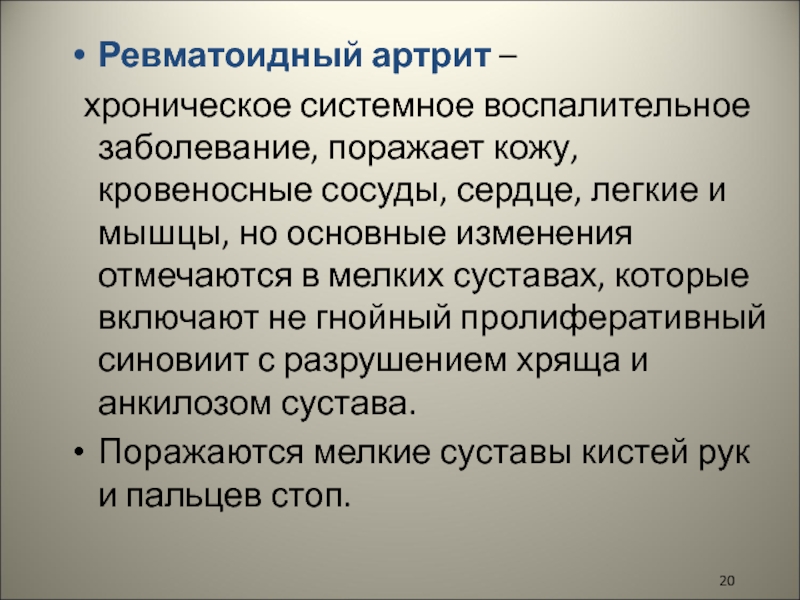 Слайд 20Ревматоидный артрит –