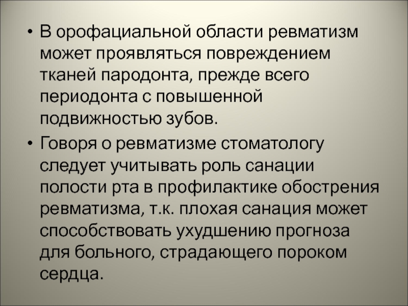 Слайд 9В орофациальной области ревматизм может проявляться повреждением тканей пародонта, прежде