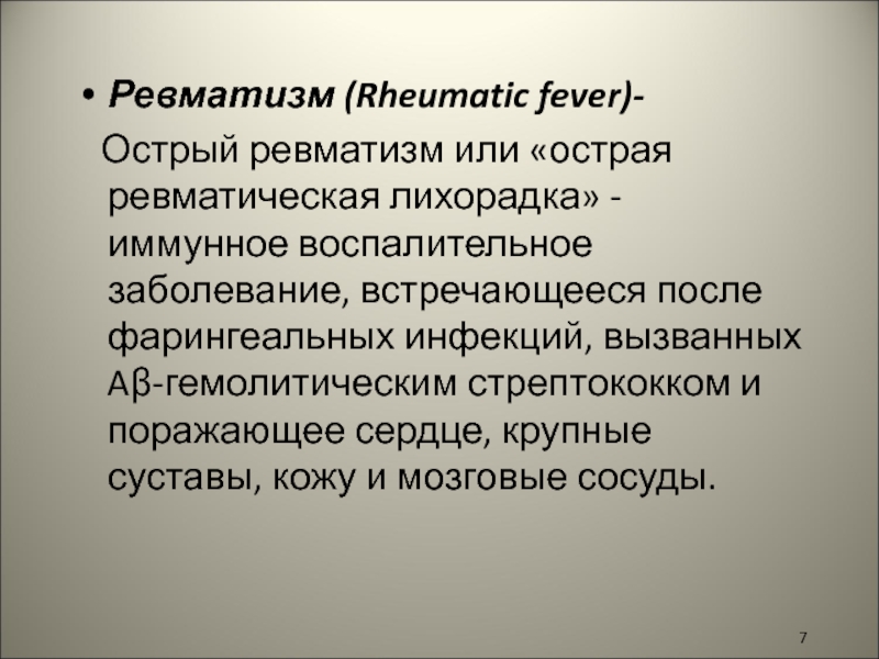Слайд 7Ревматизм (Rheumatic fever)-