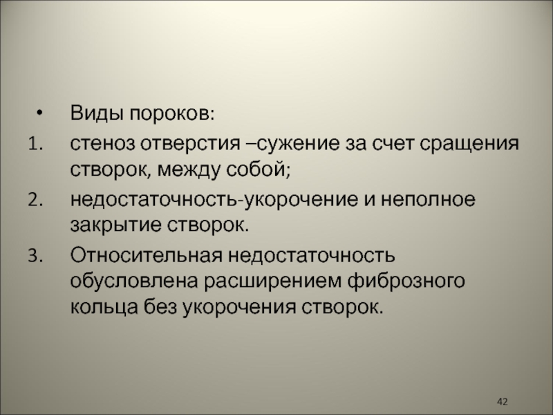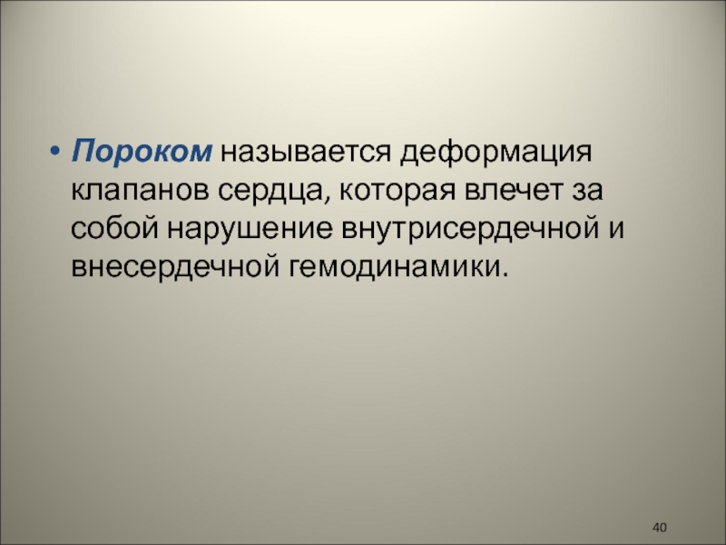 Слайд 40Пороком называется деформация клапанов сердца, которая влечет за собой нарушение