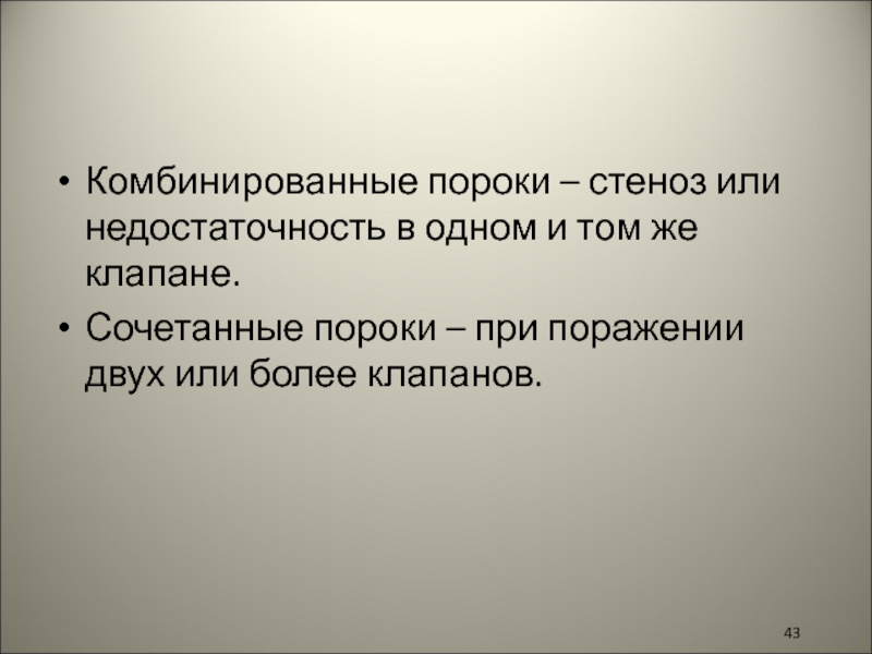 Слайд 43Комбинированные пороки – стеноз или недостаточность в одном и том