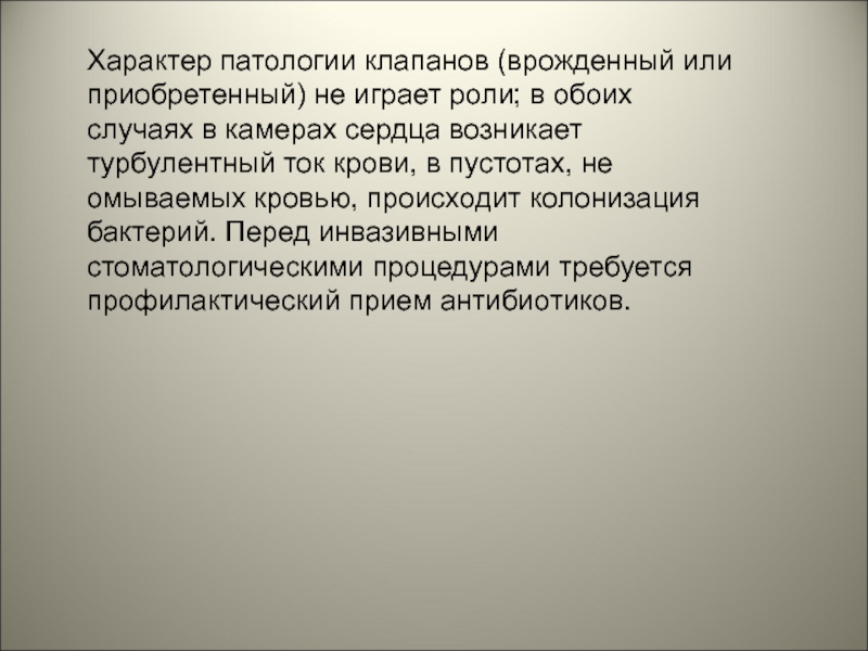 Слайд 49Характер патологии клапанов (врожденный или приобретенный) не играет роли; в