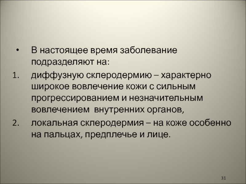 Слайд 31В настоящее время заболевание подразделяют на: