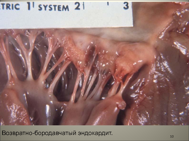 Слайд 10Возвратно-бородавчатый эндокардит.