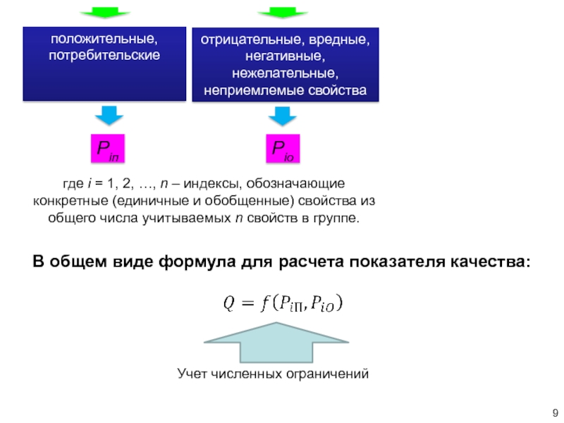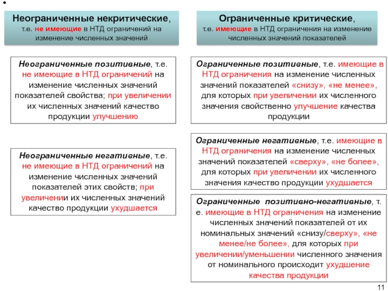 Неограниченные негативные, т.е. не имеющие в НТД ограничений на изменение численных значений показателей этих свойств; при увеличении их численных значений качество продукции ухудшается