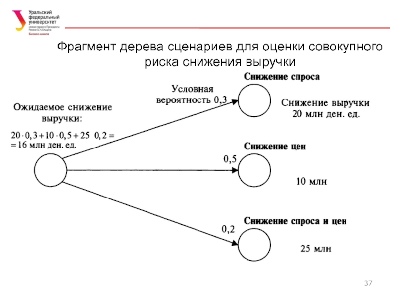 Слайд 37Фрагмент дерева сценариев для оценки совокупного