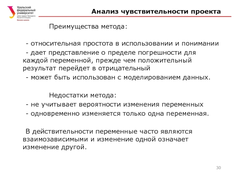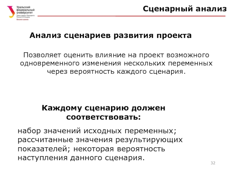 является исходная предпосылка о том, что проект должен иметь обозримое или разумное число вариантов развития.