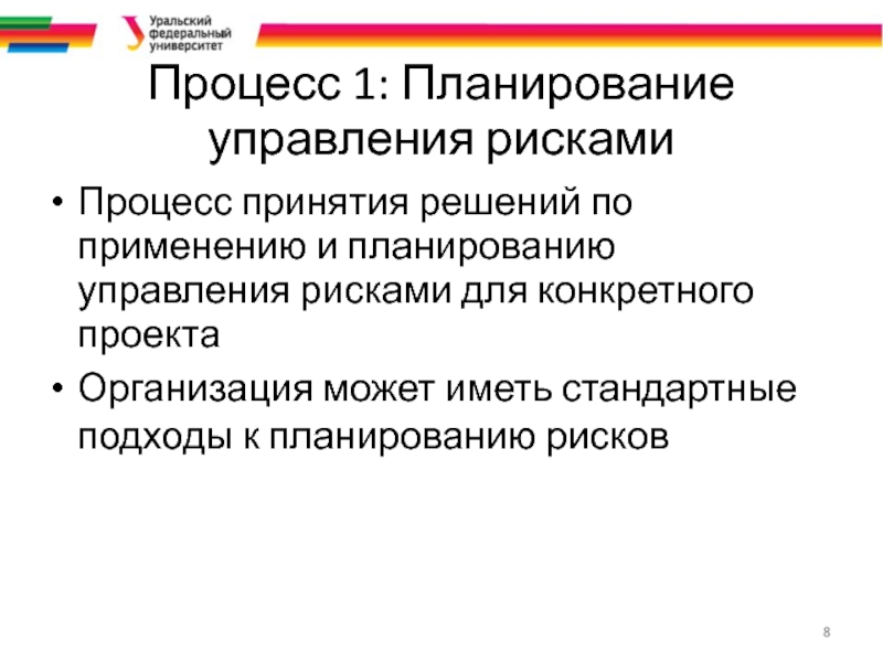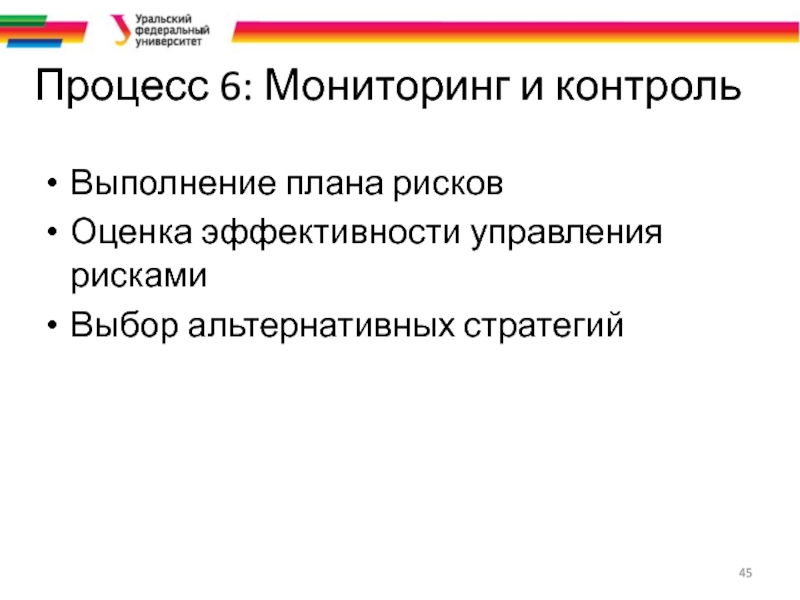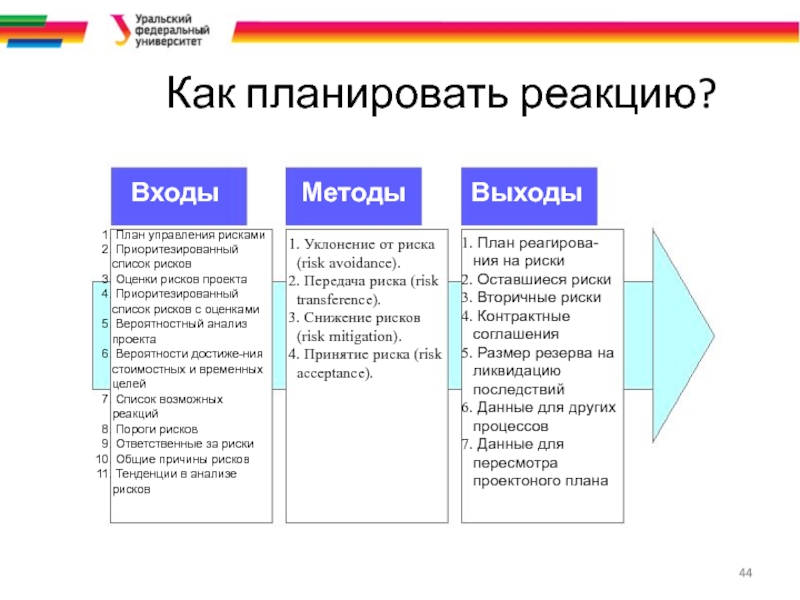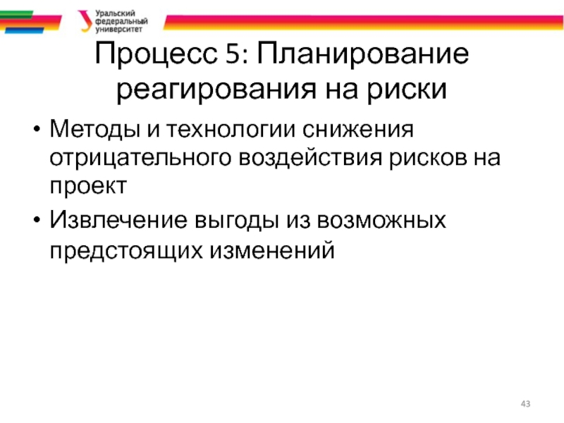 Слайд 43Процесс 5: Планирование реагирования на риски